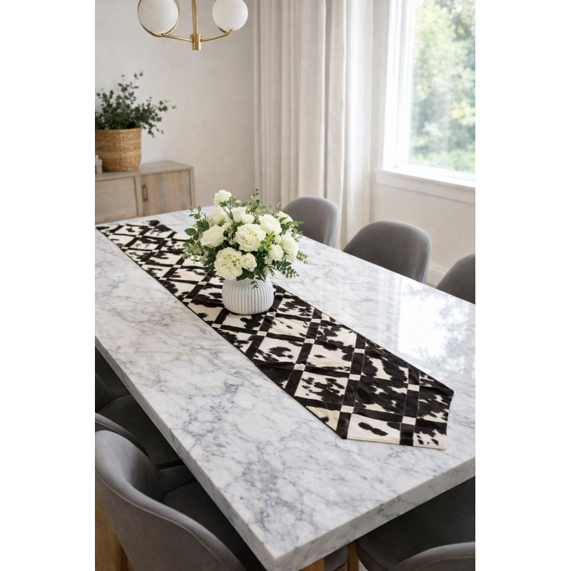 This contemporary-styled Cowhide Table Runner is crafted from 100% genuine cow skin. Embedded with a perfect finish, this durable handmade table runner is a must-have for your home decor. Having a flawless combination of colors and design, this amazing piece of art enhances the look of your table.